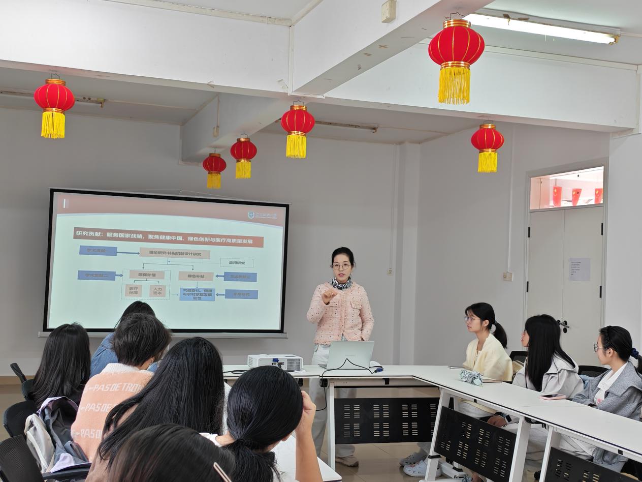 王婵首先系统介绍了其科研团队的研究方向和成效。团队由她亲自领衔,汇聚多位优秀博士生、硕士生,研究成果丰硕,累计荣获教育部高等学校科学研究优秀成果奖二等奖等7项省部级重要奖项。团队始终服务国家战略需求,聚焦健康中国、绿色创新等前沿领域开展深入研究。
