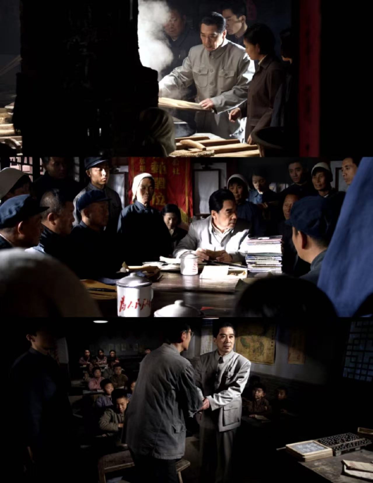 当看到伯延的村庄树木光秃、灰尘飞扬,总理脸上掠过一丝忧愁。当看到伯延公社为他精心准备的午餐,总理刚要跨进门槛的脚又退了回来。和大家坐在一起喝稀糊糊时,总理甚至连一个窝窝头都分一半给壮劳力吃……该片正是通过这些感人至深的生活片段,将一代伟人的心系民众的情怀表现得淋漓尽致。