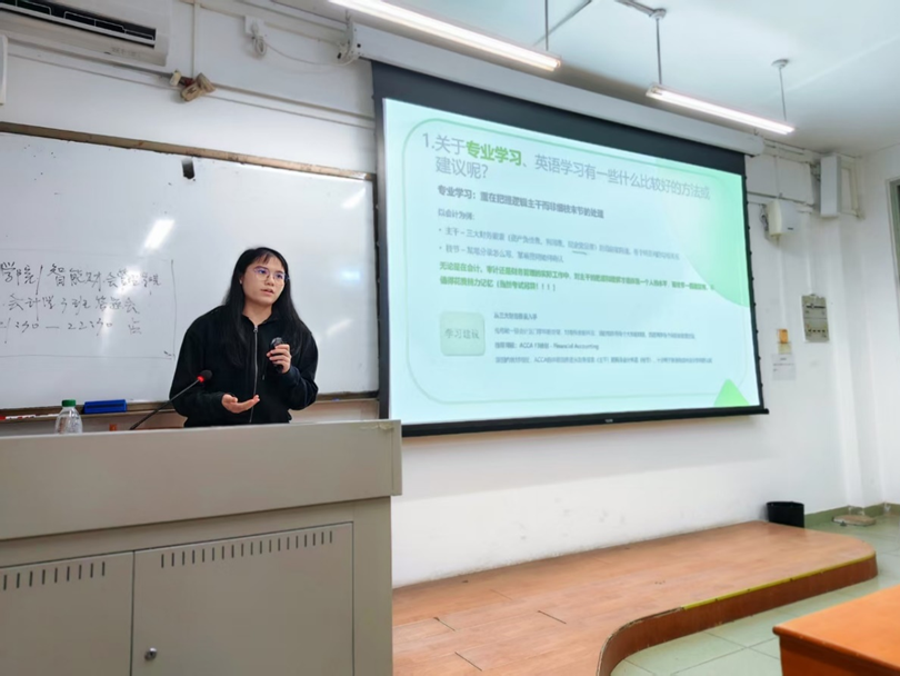 2025年4月20日晚上,紫园学生发展互助中心、2024级会计3班共邀校友导师罗心悦(2013级财务管理专业)作分享,会计学院/智能财会管理学院辅导员张妮参与分享会。聚焦学科核心:从“三大报表”到高阶证书罗心悦强调,掌握三大报表的逻辑框架是专业核心,“输入输出双轨并行”是英语能力提升的良策,初级会计、基金从业等基础证书是就业基础,ACCA、CICPA等高阶证书是职业助力,并结合自身经验为学生分享规划建议。实习与就业:内推与技能并重罗心悦以全球四大和中国八大会计师事务所为例,解析实习申请渠道,建议学生从大二起积累专业实践经验。“专业能力是基础,业务嗅觉需长期沉淀”,她总结道。