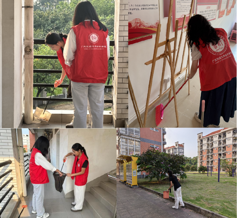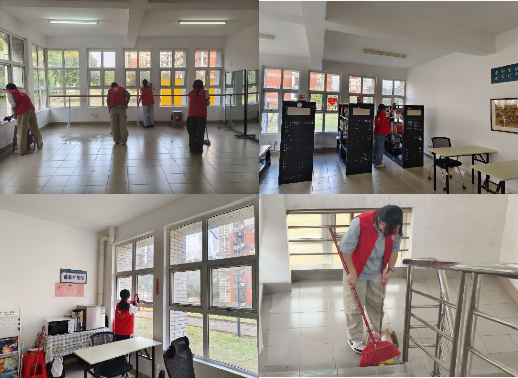 活动过程中,志愿者们对宿舍楼道、走廊,社区草坪、走道等公共区域存在的生活垃圾进行清理。同时也对社区三个活动室进行清洁工作,为同学们创造一个干净整洁的学习生活环境。同学们以实际行动践行了劳动精神,体验了劳动价值,树立了正确的劳动观念,为构建绿美社区、健康社区贡献了力量。