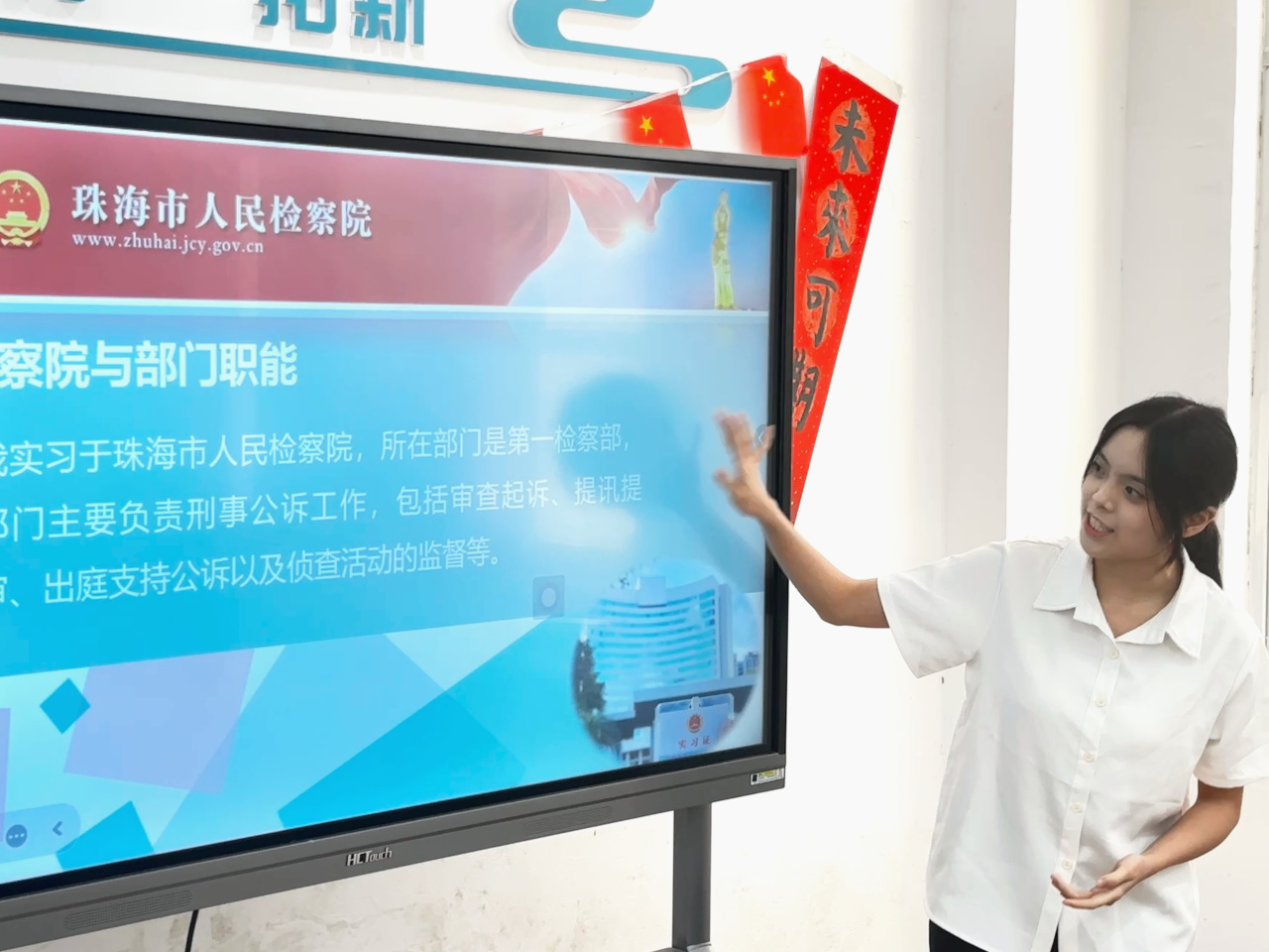 在珠海市人民检察院第一检察部实习期间,曾得煦深入接触了从提讯、案卷管理到案件讨论的全过程。通过亲历认罪认罚、取保候审等关键环节,她深化了对检察职能的认知,在实践技能与职业素养上均得到了扎实锤炼。