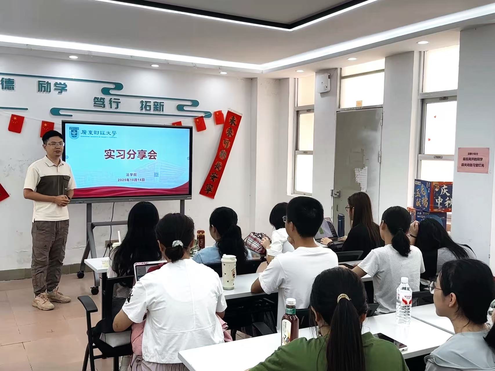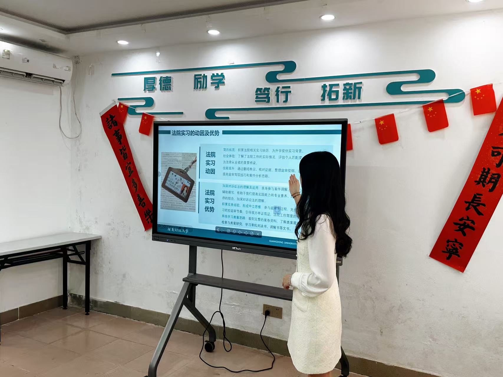 2025年10月14日下午,法学院实习分享会于广州校区杜鹃苑党团活动室圆满举行。本次活动邀请了三位分别具有法院、律所及检察院实习经历的同学作为分享嘉宾。她们结合各自独特的实习经历与切身感悟,为在场同学提供了关于实习单位选择的实用建议与深度参考。