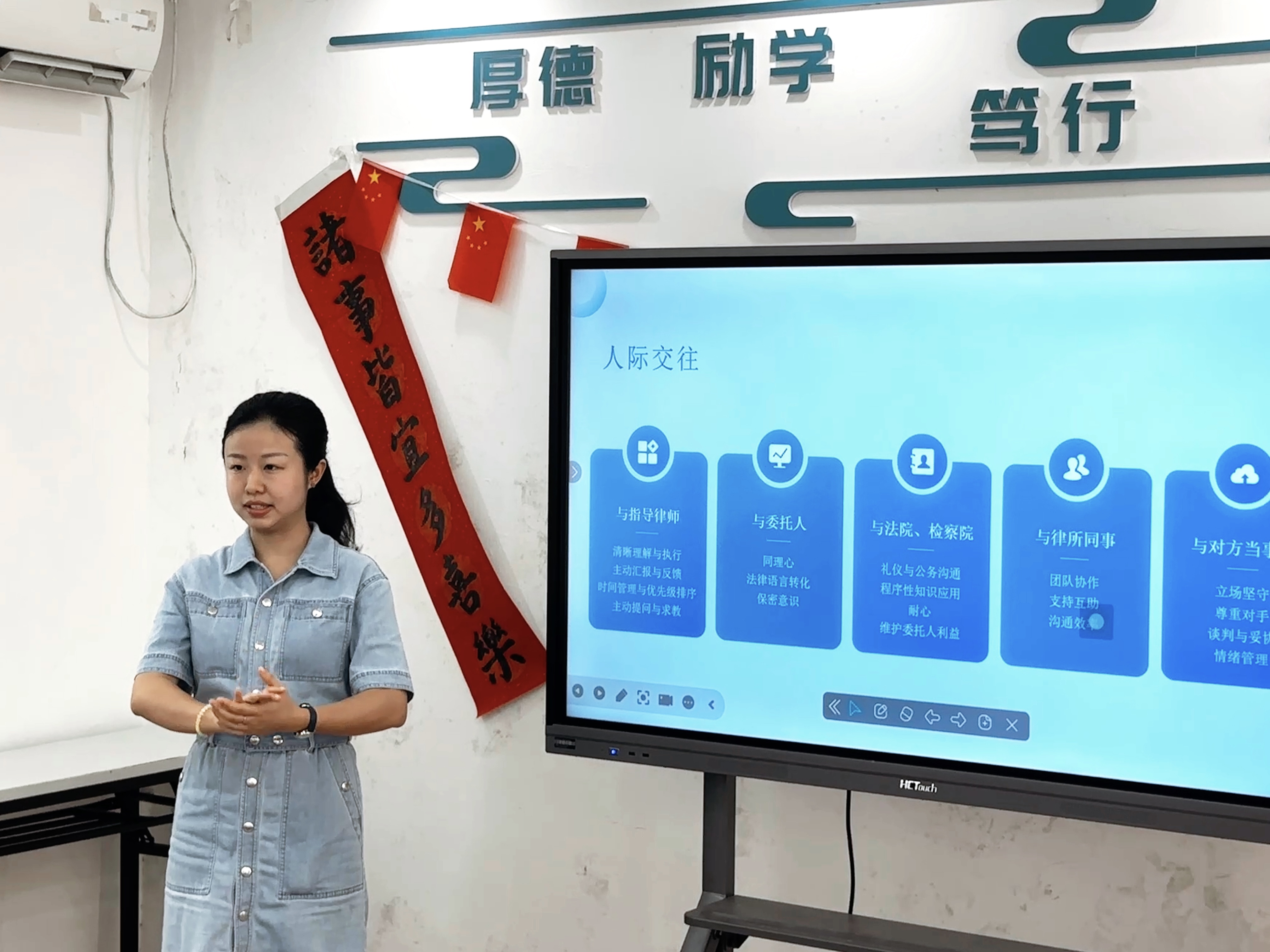 律所实习对朱嘉琪而言是一段忙碌而充实的成长之旅。她在与指导律师、客户及法院的高效协同中,锤炼了专业的沟通技巧;也通过参与律所公益项目,切身感受到法律人肩负的社会责任与职业温度。她的分享为同学们揭开了律所工作的多元面貌,激发了大家对此领域的浓厚兴趣。