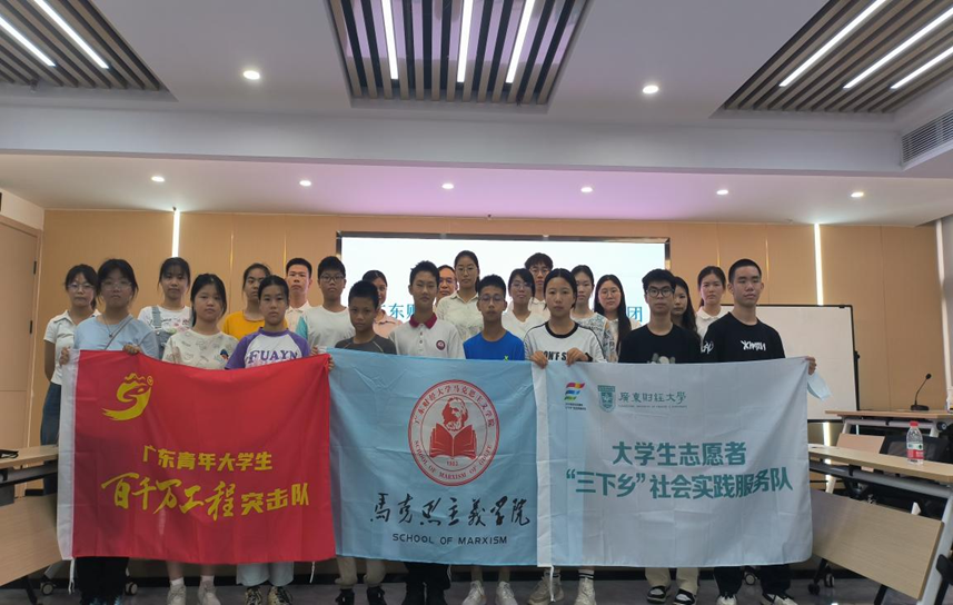 为深入传播红色文化、讲好红色故事,响应广东省“百千万工程”号召,7 月 13 日上午,由广东财经大学马克思主义理论专业硕士研究生为主组建的“百千万工程”突击队——“三和青宣”实践团,在马克思主义学院副教授、硕士生导师王金锋的带领下抵达广东省惠州市惠阳区三和街道,正式启动为期一周的“青少年宣讲队培育”教学实践活动。此次活动紧扣惠阳区三和街道团工委“培育新时代青少年红色宣讲骨干”的核心要求,旨在通过系统课程教学与实践指导,助力当地打造一支“能说、能写、自信”的青少年宣讲队伍,为红色文化在青少年群体中的传承与弘扬注入新动能。