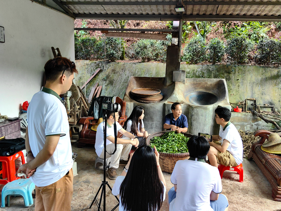 夕阳将茶山染成金红色,实践团成员和李天送站在双鹰顶的观景台远眺,连绵的茶田在暮色中如暗绿色的绸缎,百年茶香仿佛在山间凝结成实体。这场寻味之旅,不仅让年轻人触摸到了传统手艺的温度,更让古老的茶产业看到了新的发展可能。