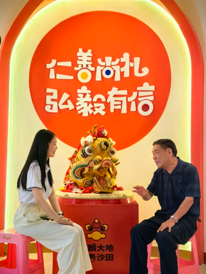实践团就麒麟文化的传承与发展对张振峰进行了深入访谈。谈及技艺传承现状,张振峰坦言,麒麟舞曾一度面临失传危机。在老一辈艺人的坚守与政府部门的支持下,通过融合民间手工艺制作、乐器演奏、武术动作等元素,丰富了表演形式,最终形成独具特色的“沙田麒麟习俗”,这门技艺得以延续。