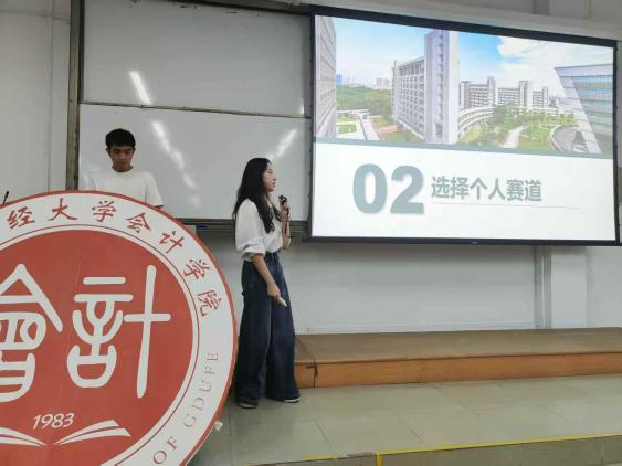 宣讲会上,学术部副部长吴夏、黄心怡分别介绍了“双百工程”的基本背景和总体情况。吴夏围绕赛事体系,就竞赛类别与定义作了系统说明;黄心怡结合自身经历,指导学生合理规划发展路径。内容详实、条理清晰,为开展“双百工程”相关工作提供了明确指引。