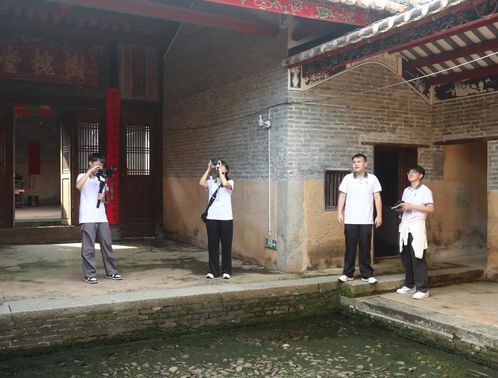 调研期间,团队充分运用数字技术开展记录工作:古建筑活化小组通过无人机航拍鹤湖围全景,为后期H5创作、3D建模提供基础素材;在完成影像MV外景拍摄后,成员返回围屋补充镜头,确保素材完整性,同时着手制作全景导览视频,以便全方位呈现围屋风貌与文化底蕴。