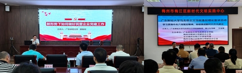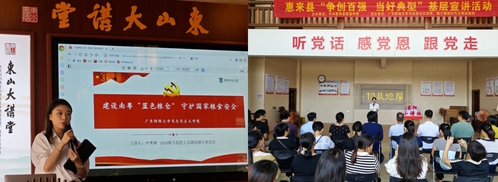 近期,我校马克思主义学院师生一行60余人组成6支理论宣讲团队,赴揭阳、梅州各县区与14个新时代文明实践中心(书院)开展“组团式”结对共建,集中力量宣传宣讲80多场。宣讲团教师和研究生小分队,把课堂搬到榕树下、广场边、祠堂前,把党的创新理论与新时代生动实践案例充分结合,传入“寻常百姓家”。宣讲覆盖人群既有县区委班子成员、乡镇党政干部、机关党员干部、村党支部书记,也有企业家代表、村民代表和两新党组织党员、企事业单位职工,还有普通群众、中小学师生。