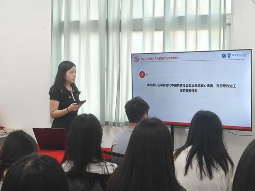 人力资源学院学生第二党支部在佛山校区桂园社区党团活动室顺利开展“深学回信精神担使命,细悟条例要义践初心”第一议题学习活动。支部全体党员、发展对象和入党积极分子等20人参加。本期活动由学生党员黄春敏主讲。