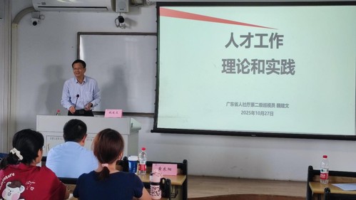 为推进人力资源学院师生专业理论学习和实践经验分享,1027日下午,学院开启2025-2026学年“启航大讲堂”,邀请广东省人社厅原二级巡视员魏建文作题为人才工作者的理论和实践专题讲座。学院党委书记黄东阳,副书记阮方明,副院长宋一晓、魏伟,人才系马银坡博士及2024/2025级人才发展与管理专业学生参加。