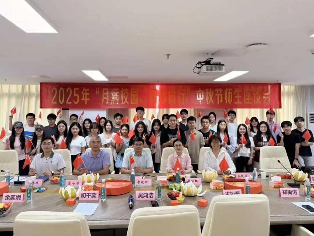 茶话会后,师生移步东塔大厅参与趣味互动活动。全体师生共同观看2025年国庆升旗仪式视频,感受爱国氛围;“家乡风土分享”环节中,学子介绍各地中秋习俗、国庆活动与地域文化;“你画我猜”游戏增进师生默契,活动最后师生合影留念,定格双节同乐的温馨瞬间。