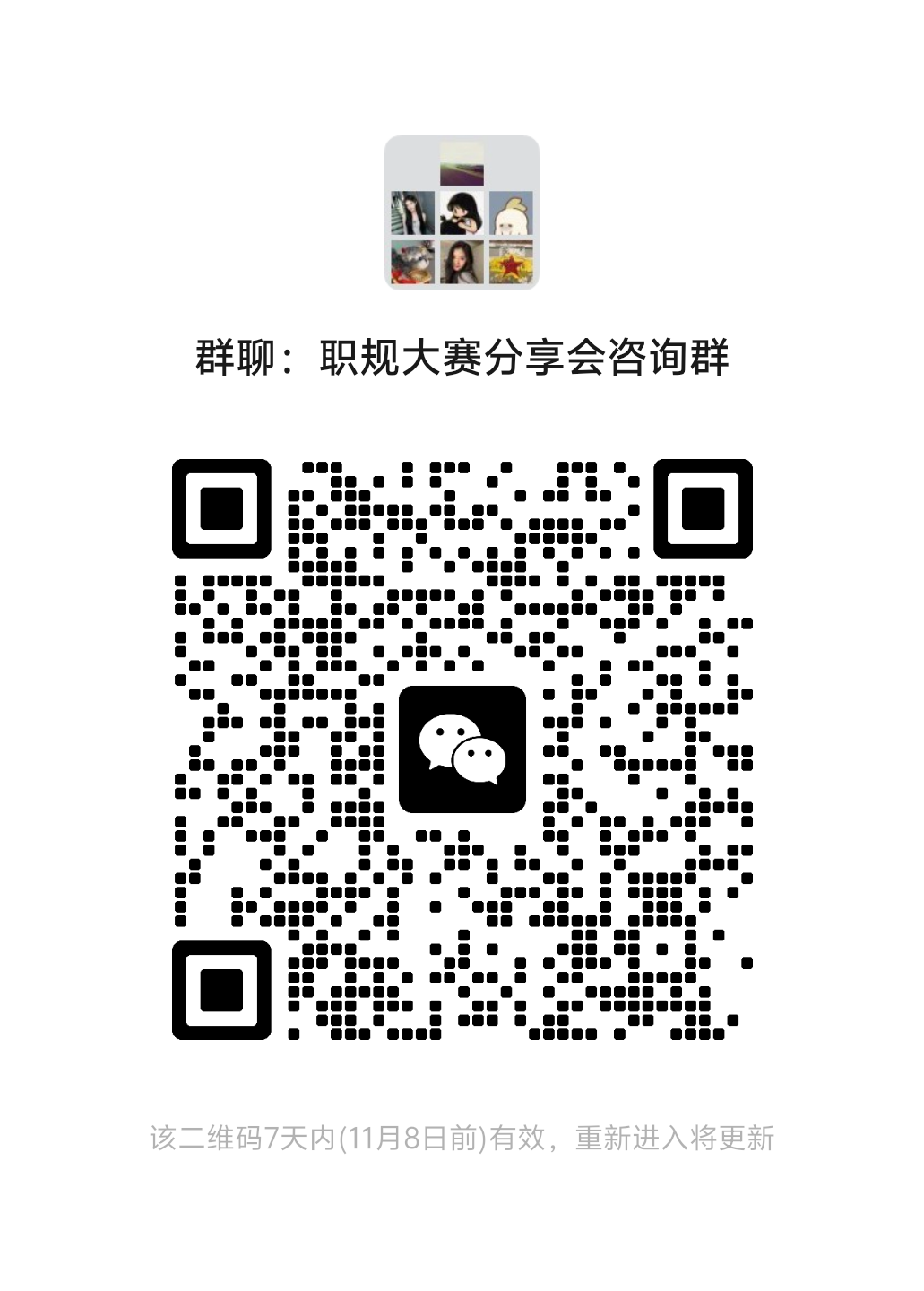 扫码进入活动群,11月3日中午12点将发放报名问卷,按报名顺序确定参加同学。