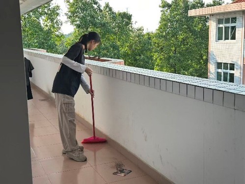 主动加入志愿者行列,在清扫公共区域中体验劳动价值;用心打理宿舍内务,从清除积水、整理杂物做起,守护好我们共同的“家”;延续绿美精神,将劳动习惯融入日常,成为社区环境的守护者。