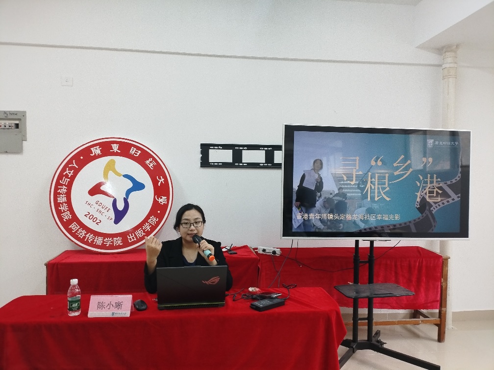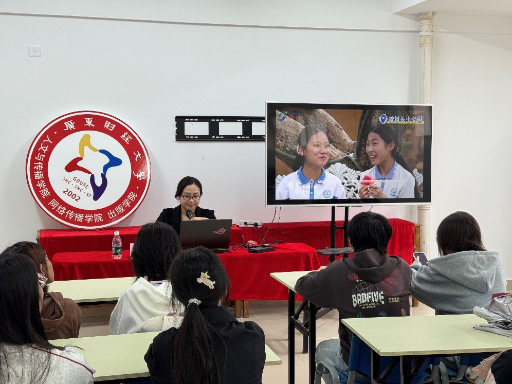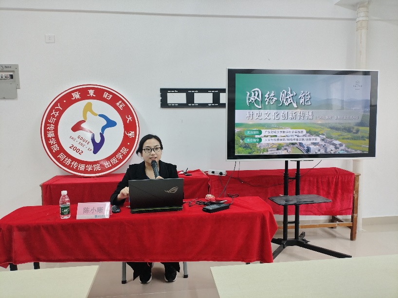 陈小晰老师向同学们分享了两个她指导的实践项目,首先第一个是“网络赋能村史文化创新传播”项目。她介绍了该项目的发展背景,还分享了项目制作的视频。“宣传作品一经推出,有效地带动了当地茶叶的产量。这就是我们大学生具体能为乡村振兴做的助力。”陈小晰老师欣慰地表示。