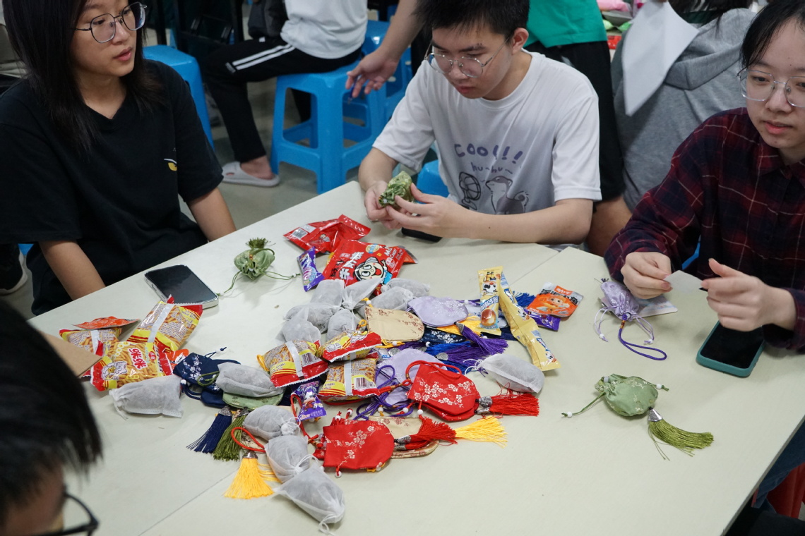 同学们挑选心仪的绸缎香囊,小心翼翼地装入清香艾草,亲手制作专属的冬日守护符。随身佩戴的不仅是驱寒辟邪的香囊,更是手工制作的独特温度。