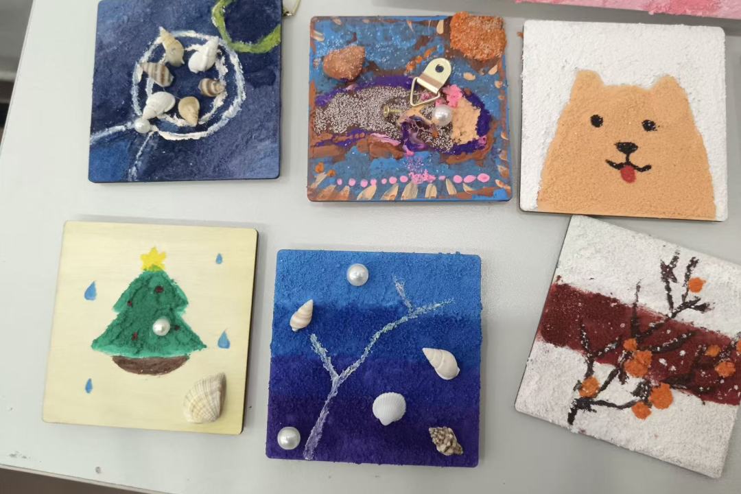 同学们全神贯注地堆砌、塑形,勾勒着独一无二的纹理。在沙粒的微妙触感中,内心的烦忧仿佛被悄然滤净。这枚小小的作品,不仅是冰箱上的点缀,更是安放于日常的“此刻心安”。