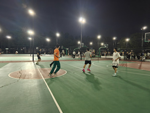 比赛当天,西门灯光球场的灯光照亮了整个赛场,空气里都弥漫着紧张又兴奋的气息。随着裁判一声哨响,同学们迅速进入状态。同学们配合默契,凭借灵活的跑位与快速的进攻,频频冲击篮下,展现出青春的冲劲。