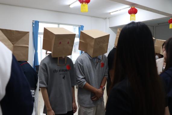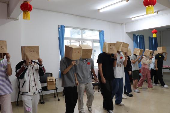 “情绪头套”环节则带来沉浸式体验。同学们在纸袋上画出自己近期的负面情绪表情,与对面同学交换佩戴,直观感受情绪的“压迫感”,并学习如何正面应对扑面而来的负面情绪。