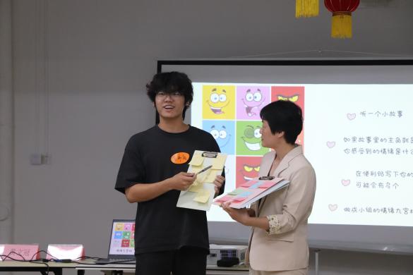 随后,曾老师带领大家系统解析“喜、怒、哀、惧”四种基本情绪,从面部表情、身体感觉、动作行为到声音表达,层层深入。同学们在小组分享中达成共识:情绪本身无好坏之分,每种情绪都有其独特功能与意义。