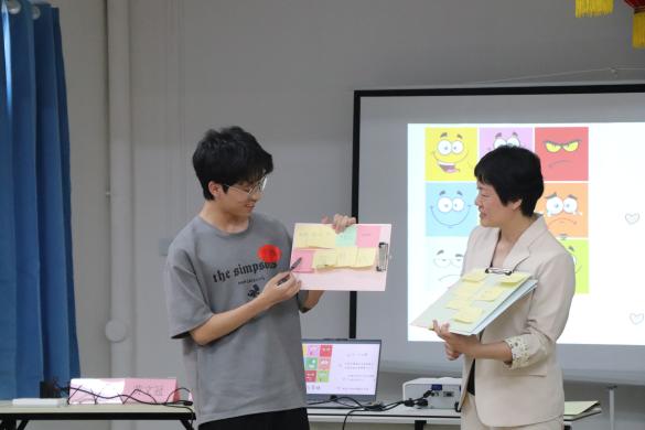 “情绪翻转卡”环节将活动推向纵深。各组围绕抽到的情绪卡片,共同探讨其正向与负向功能。有同学感慨:“原来愤怒能帮我们守护边界,悲伤也能教我们学会珍惜”。情绪的多面性在这一刻被真切看见、温柔接纳。