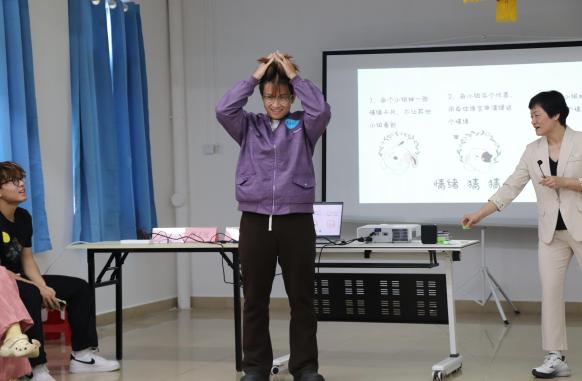 “情绪猜猜猜”环节笑声不断。各组抽取情绪卡片后用肢体语言演绎,其他同学踊跃竞猜。在表演与观察中,大家真切体会到情绪如何通过身体传递,又藏着哪些细微变化。
