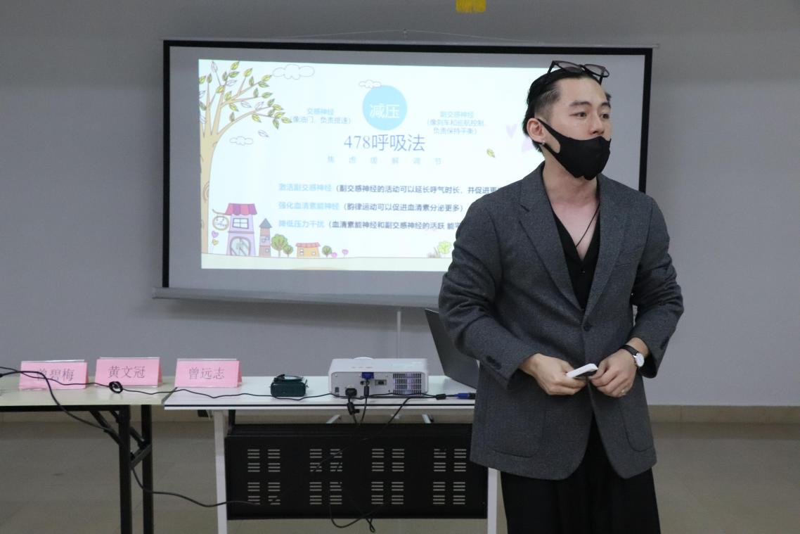 黄文冠老师带来的“开心法则”成为核心亮点。他提出两个获得快乐的核心:活在当下与感受当下美好,并讲解“心流”状态与“正念”方法,揭示快乐并非遥不可及的目标,而是可训练的能力。针对负面情绪,黄老师现场教授“478呼吸法”,通过激活副交感神经为大脑“踩刹车”,帮助身心恢复平静。