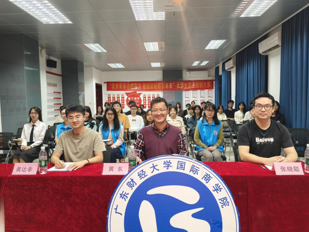 11月12日晚,国际商学院在有为书院9栋102党团活动室举行全国大学生职业规划大赛学院选拔赛。学院党委副书记黄东、辅导员黄达非、张晓聪出席并担任评委,40余名学生代表现场观摩。