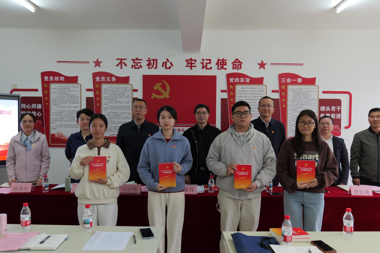 在交流环节,与会师生代表结合党课内容以及自身学习工作实际,分享了心得体会。活动中,组织部(机关党委)党支部向紫园社区师生党员代表赠送了《党的二十届四中全会〈建议〉学习辅导百问》。