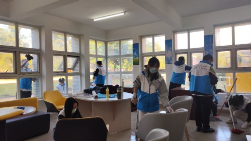 为营造整洁舒适的办公和学习环境,让老师和学生在温馨的氛围中开展工作与学习,同时培养同学们的劳动意识和奉献精神,1122日下午,竹园学生发展互助中心成功组织了社区志愿劳动活动。