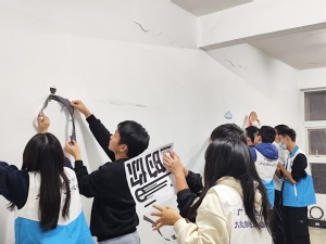本次活动不仅限于20栋办公室,志愿者们还延伸服务至21栋的研讨室和自习室。在研讨室内,大家集思广益,将竹下研思天道酬勤等励志标语精心布置在墙上,期望激励每一位在此思考学习的同学,让他们在浓厚的学术氛围中潜心钻研、勤奋进取。在自习室内,志愿者们张贴了一系列充满正能量的话语和精美图案,为来此学习的同学们营造了积极向上的氛围,鼓励大家为梦想不懈奋斗,在知识的海洋中勇往直前。