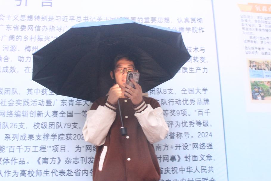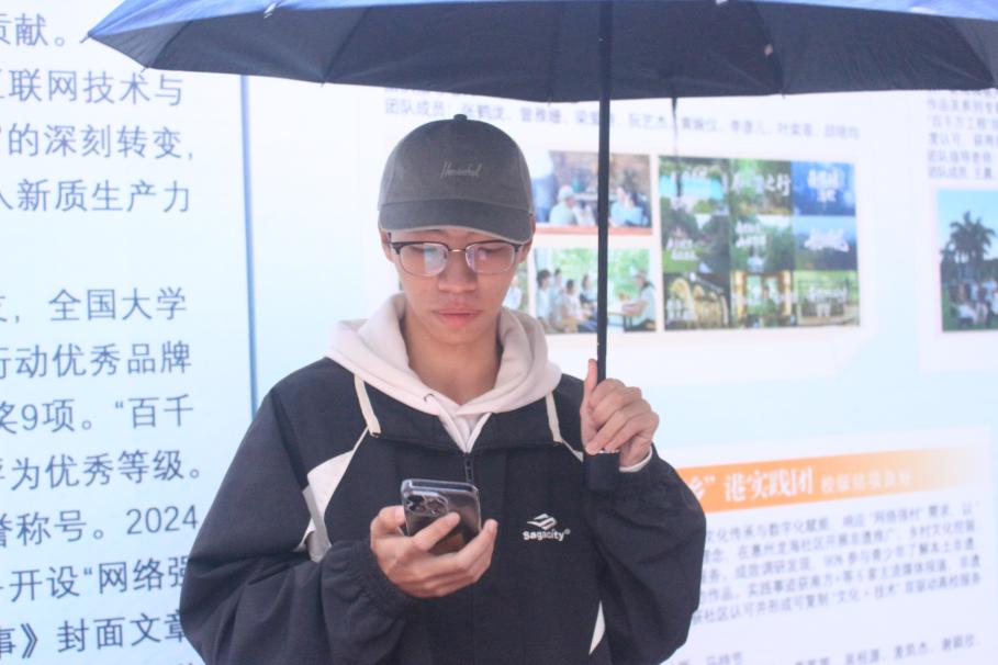 尽管风雨交加,同学们的热情依旧不减。在热烈的掌声中,曾参与两次“百千万工程”与“双百工程”项目的刘炜杰同学开始发言。首先,他建议新手同学从有基础的“转化项目”入手,熟悉流程后再开拓新项目。其次,他提到课题设计需注重可行性、实用性与创新性,真正地为当地解决问题。此外,他还强调团队需明确策划、设计、媒体等分工。在调研方面,调研需覆盖当地居民,样本量应充足。最后他指出,实践结束要及时整理报告、视频等成果,并通过多平台投放,高效完成实践。