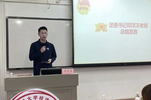 经济学院(佛山校区)团委书记邓洋洋老师在大会尾声作总结讲话,对各班团支书在凝聚团员、服务同学、落实团务等工作中的突出表现给予高度认可,感谢大家用实干担当筑牢了支部工作的根基。他强调,新时代团支书要强化思想引领责任,带头学习贯彻党的重要思想,引导广大团员坚定理想信念、锤炼品德修为。最后,邓洋洋老师希望各位以更饱满的热情创新工作方法,积极挖掘学院特色资源,让团务工作与青年成长同频共振,推动经济学院团务工作走深走实、出彩出圈。