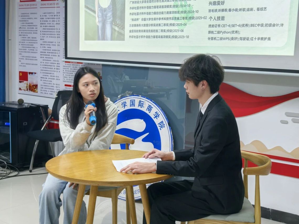 11月25日晚,国际商学院在有为书院9栋102党团活动室成功举办“有为青年访谈”活动。本次活动由学院辅导员张晓聪老师主持,特邀23级国际商务1班陈佳萍、24级财务管理专业李卓霖两位优秀学生代表担任嘉宾,吸引了40余名学生代表现场参与。