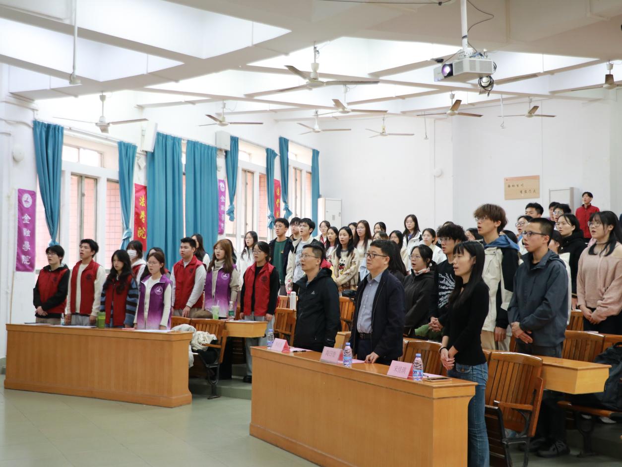 活动以“筑牢思想根基、勇担时代使命”为核心,设置六项议程,在庄严的团歌与校歌奏唱中拉开序幕,激昂旋律凝聚师生共识,点燃青年学子投身思政学习、践行初心使命的热情。