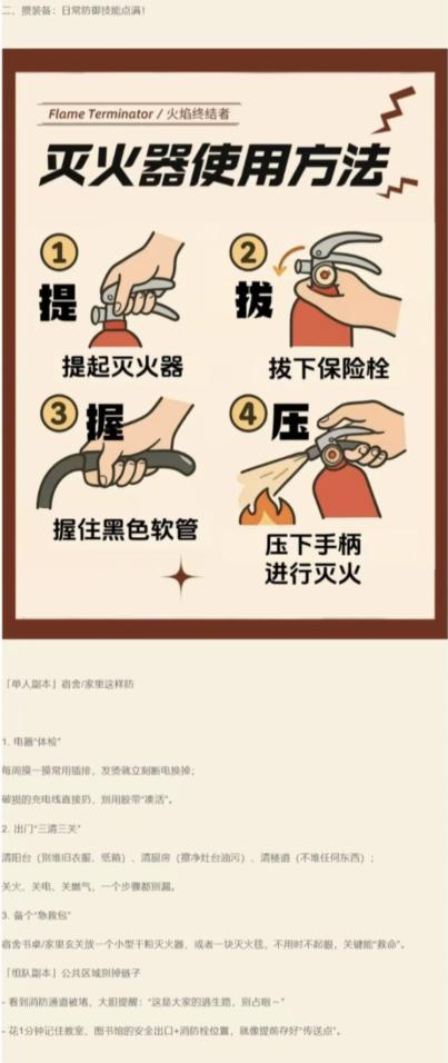 作品名称:《校园生活的必备锦囊——消防“通关指南”》