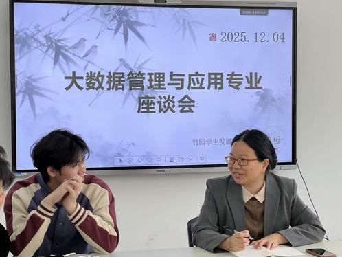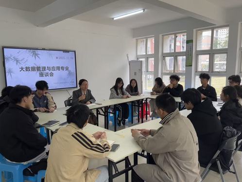 以数据赋能教学,以研讨碰撞思维!2025年12月4日大数据管理与应用专业座谈会在竹园社区19栋b113活动室温情启幕,深耕教学痛点,共寻优化良方。胡慧蓉老师与多名学生集聚一起共同讨论对于课堂的建议。
