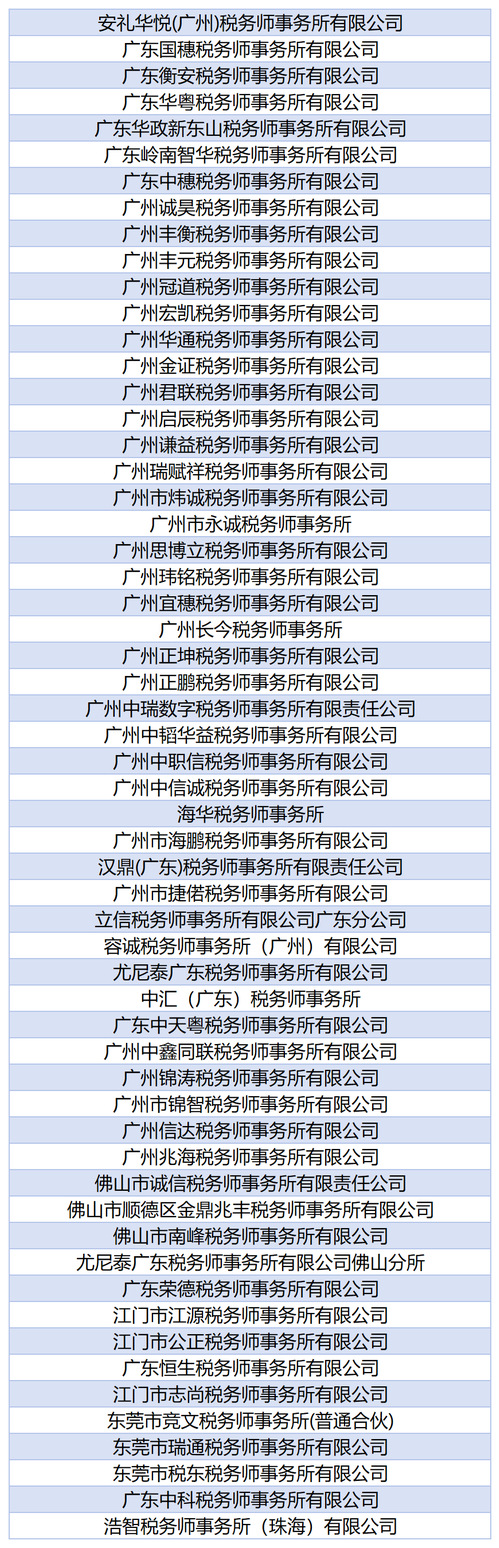 广东省注册税务师协会会员单位(包含:经认定的5A级、4A级、3A级税务师事务所)