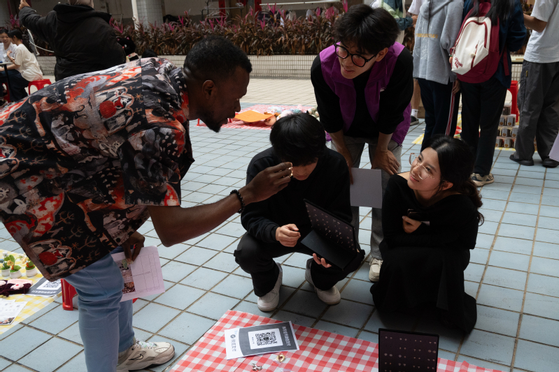 公益联动区作为活动核心亮点,吸引了大批师生驻足支持,留学生销售助理以流利的双语沟通热情推介义卖商品,耐心解答咨询、细致打包物品,用真诚服务为公益事业添砖加瓦。他们的积极参与不仅为公益义卖注入了国际化元素,更成为校园跨文化交流的生动实践,展现了我校学子开放包容、乐于奉献的精神风貌。互动体验区的趣味游戏摊位打破了年级、专业的界限,同学们在协作闯关、趣味比拼中收获欢笑与友谊,现场师生同乐、氛围融洽,让“一站式”学生社区成为凝聚人心、促进交流的温馨平台。