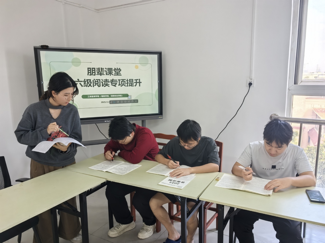 此次朋辈课堂活动以“学帮带”的互助模式,搭建了高效实用的备考交流平台,不仅为学生提供了针对性的阅读提升指导,更充分发挥了朋辈榜样的示范引领作用。活动既助力学生夯实了四六级备考基础,也进一步凝聚了勤学善思的校园氛围,彰显了学院对学生成长发展的切实关怀,为提升人才培养质量注入了温暖力量。