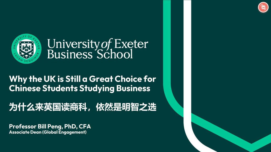 2025年12月16日下午,国际商学院在有为书院9栋114会议室成功举办“英国商科留学解析”专题讲座。活动特邀埃克塞特大学商学院副院长Bill Peng教授担任主讲嘉宾,吸引了众多对出国留学感兴趣或正处于决策阶段的同学积极参与。讲座由国际商学院国际化业务及2+2项目中心主任陈美兰老师主持。
