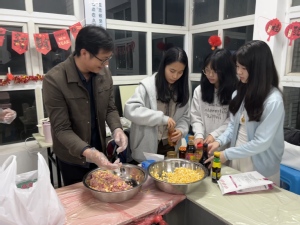 冬至寒意浓,师生情意暖。为传承中华优秀传统文化,丰富社区活动,拉近师生距离,在冬至佳节来临之际,12月16日晚,在学工部的大力支持和指导下,大数据与人工智能学院协同竹园社区组织在竹园19栋B113开展了“承冬至古俗 谱竹园新章”包饺子活动。学生工作部副部长张自广,工商管理学院党委副书记何燕,学生工作部老师邵奕翔、符弟,大数据与人工智能学院党委副书记龙启艳、辅导员老师,与大数据与人工智能学院24级、25级学生代表以及社区学生代表齐聚一堂,揉面、擀皮、包饺子,在欢声笑语中感受传统节日的魅力,共享温馨的冬日时光。