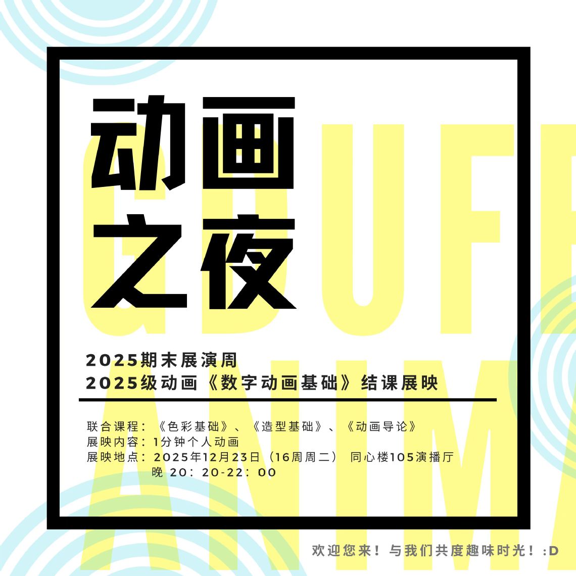 【有为书院22栋】关于开展2025期末展演周之《数字动画基础》结课展映活动的通知