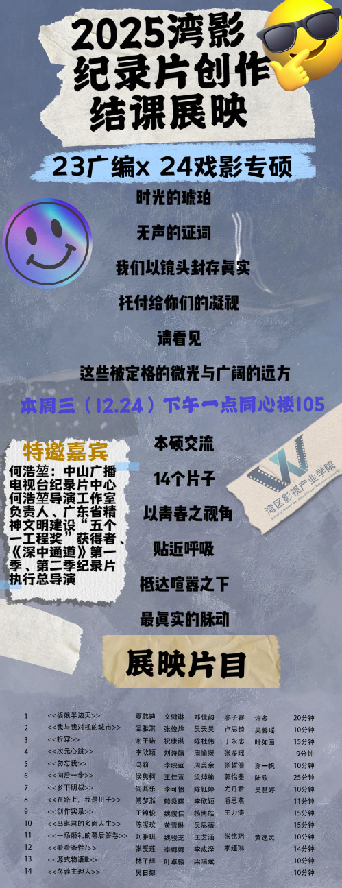 【有为书院22栋】关于开展期末展演周之纪录片创作结课展映活动的通知