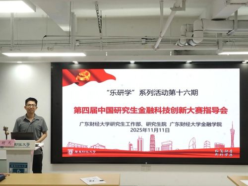 为帮助我校研究生提升金融科技领域创新实践能力,增强赛事竞争力,11月11日下午,广东财经大学研究生工作部、研究生院与金融学院在33栋西塔“一站式”研究生社区337学术报告厅联合举办“乐研学”系列活动第十六期—第四届中国研究生金融科技创新大赛指导会。本次活动特邀金融学院金融科技系系主任胡凡副教授担任主讲人,各学院研究生共计70余人参加。