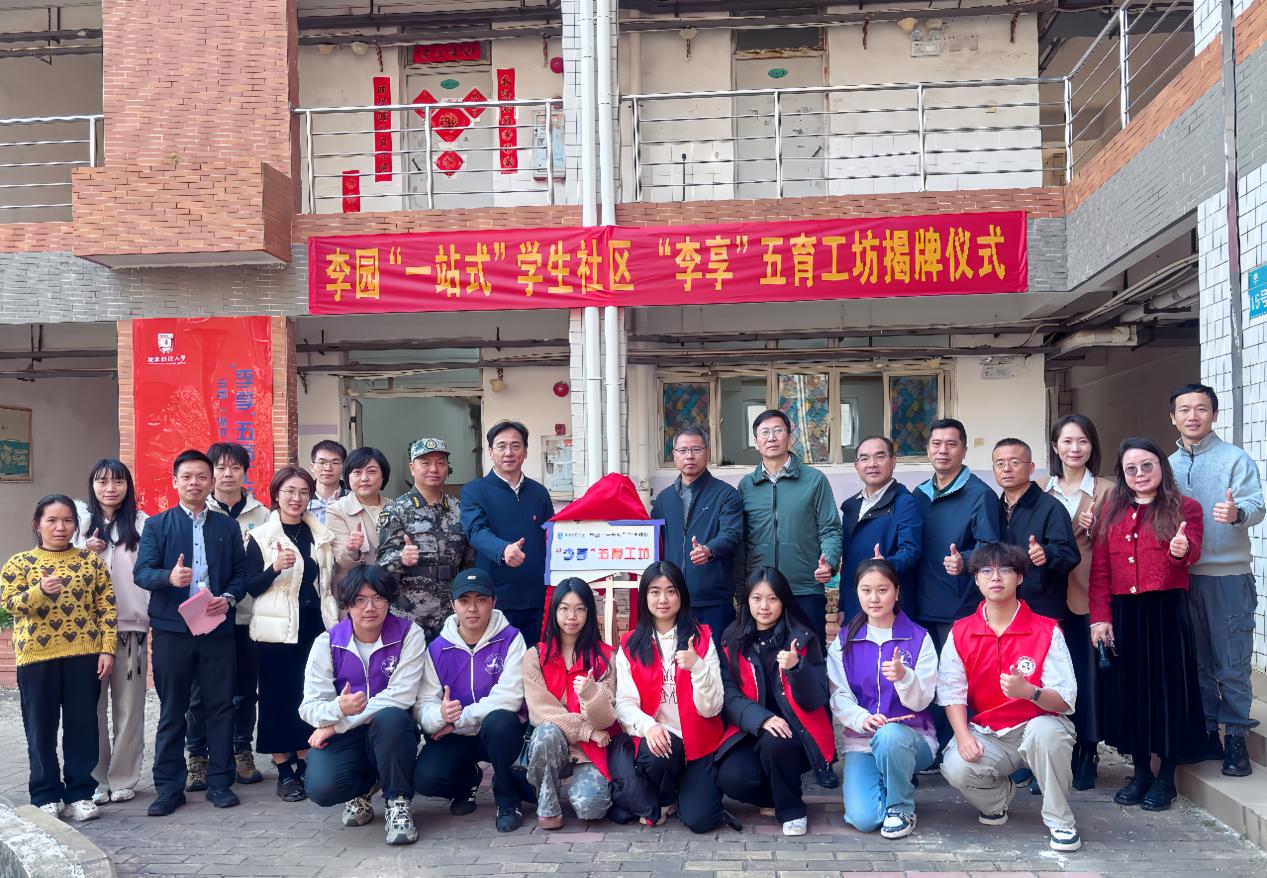 12月29日上午,李园“一站式”学生社区举行“李享”五育工坊揭牌仪式,并同步开展“印拓年轮,纸墨迎新”迎元旦主题活动。学校党委常委、副校长张凯出席活动,学工部、佛山校区工作部、外国语学院、金融学院、人文与传播学院(网络传播学院、出版学院)、外国语学院等相关单位负责人,社区辅导员及学生代表共同参与。