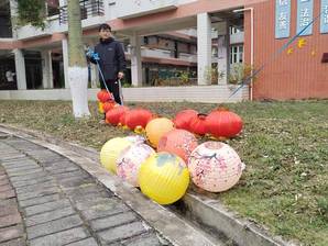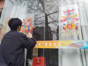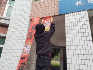 在辅导员与学生干部们的共同努力下,桃园处处挂起了鲜艳的灯笼与对联。对联随风轻扬,灯笼点缀桃园,一步步行走其间,仿佛走进一幅流动的节日画卷。社区的每一个角落,都弥漫着辞旧迎新的喜悦。