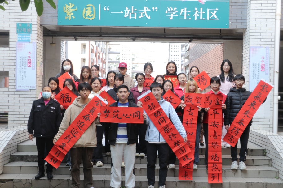 活动尾声,全体参与者手持自己创作的春联作品合影留念,用镜头定格了这一刻的喜悦、收获与社区大家庭的温暖。一张张灿烂的笑脸,与火红的春联相互映衬,构成了冬日校园里最暖心的风景。