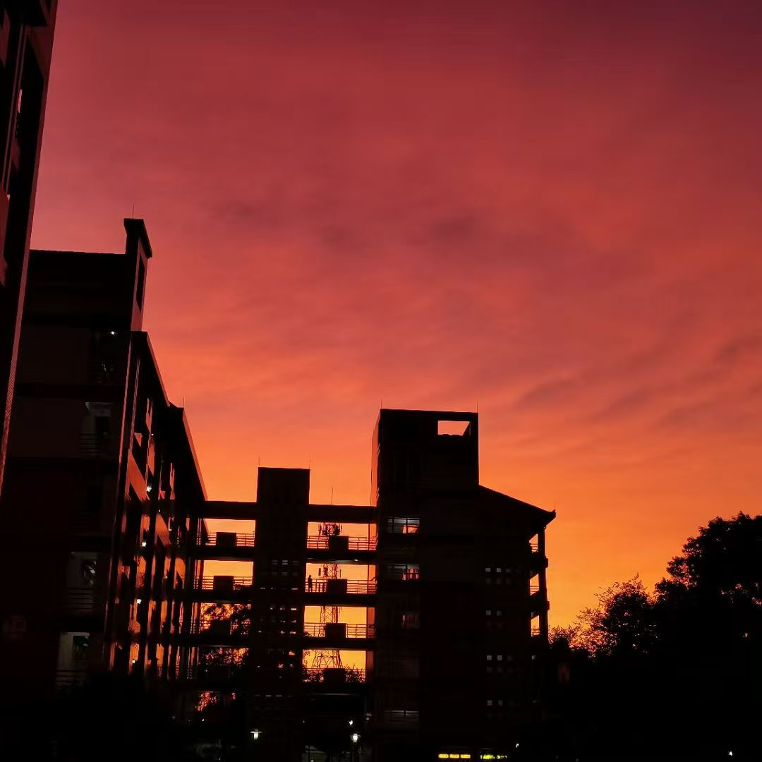 拍摄于某天我上完一天课回到紫园的傍晚,在看到宿舍楼的那一刻,我感觉一身的疲惫都散去了,而欣赏到宿舍楼后的火红晚霞,让我的心情更加美好。