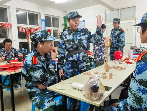 最后是合力搭塔”互动环节。工作人员为各小组分发积木材料,要求同学们在规定时间内分工协作完成搭塔任务。过程中,各组同学充分沟通、默契配合,或规划搭建策略,或动手拼接积木,不时调整方案应对突发状况。最终,多组队伍成功完成搭塔挑战,现场响起阵阵欢呼。随后,趣味集体游戏与暖心分享环节依次展开,同学们在协作闯关与文化浸润中进一步拉近距离,现场欢声笑语不断。